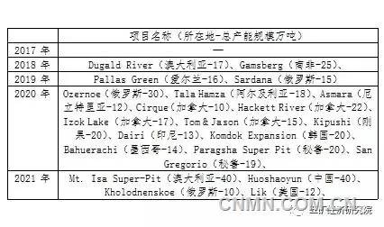據(jù)2017年woodmackenzie最新數(shù)據(jù)顯示,至2021年全球礦山產(chǎn)能將達(dá)到1457.5萬噸,較2017年的1371.8萬噸增長6.2%。其中,到2021年之前,10萬噸以上新建礦山共計(jì)21座,總達(dá)產(chǎn)產(chǎn)能規(guī)模超過405萬噸。