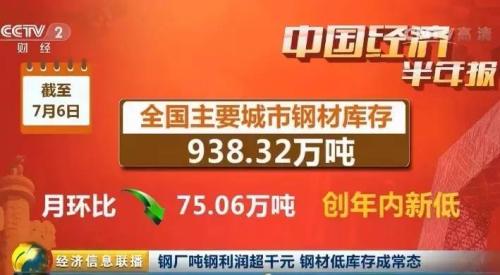 鋼廠噸鋼利潤(rùn)超千元 鋼材低庫(kù)存成常態(tài)