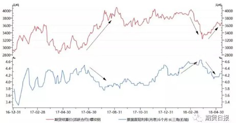 對(duì)于鋼材現(xiàn)貨價(jià)格小幅回落造成的鋼材期現(xiàn)基差縮小,可以理解為在期貨遠(yuǎn)期價(jià)格悲觀貼水現(xiàn)貨的情況下,現(xiàn)貨價(jià)格從高位小幅的回落不會(huì)造成遠(yuǎn)期悲觀的進(jìn)一步加劇,對(duì)期貨遠(yuǎn)期價(jià)格影響不大,從而導(dǎo)致期現(xiàn)基差縮小的結(jié)果。