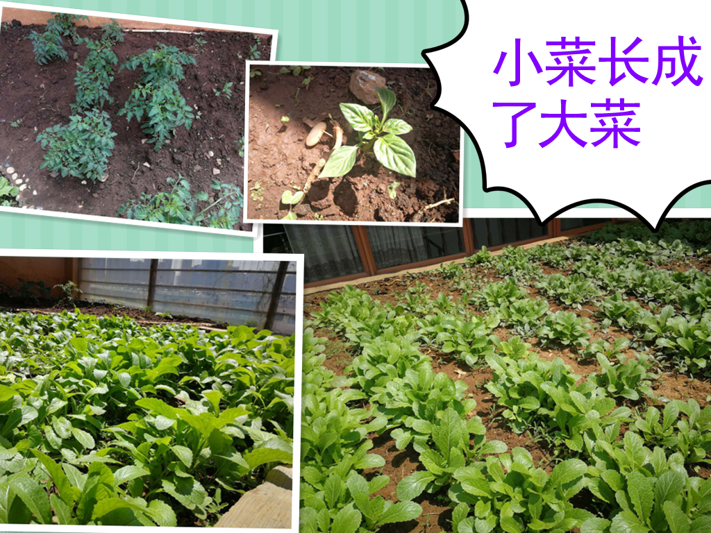 在陽(yáng)光與雨水的滋潤(rùn)下,不負(fù)期待,小菜初長(zhǎng)成。